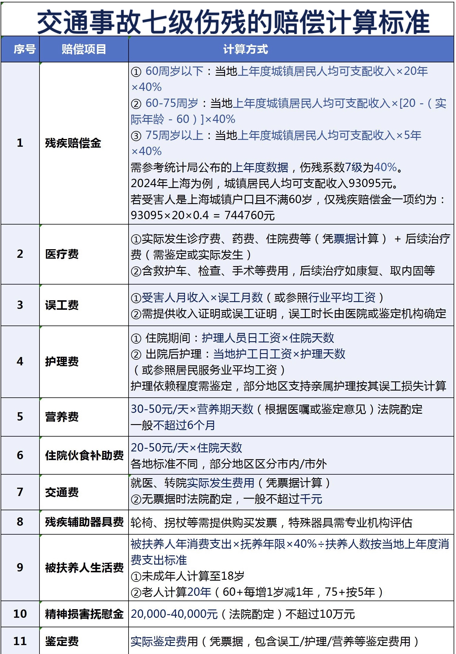 2025年上海交通事故七级伤残的赔偿计算标准估算: