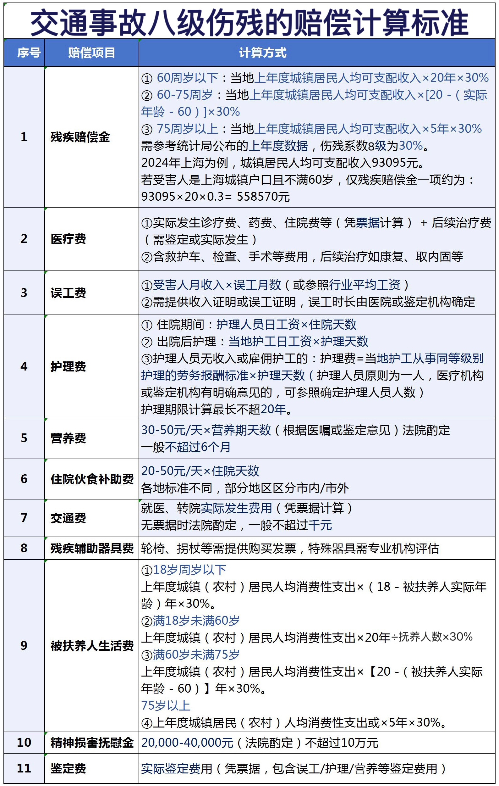 2025年上海交通事故八级伤残的赔偿计算标准如下: