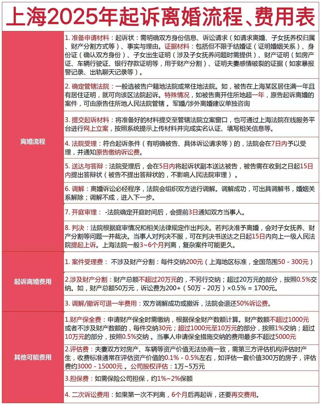五、诉讼离婚流程费用一览图
